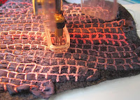 The starting piece of felt was quite thick, using my Janome needle-felter I added some merino/alpaca/silk blends and hand-stitching. Then using various bits and pieces from the kitchen, a bit of cooking ...