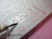 The first stage was to transfer my hand drawn design onto an Ezy carve printing block using Saral transfer paper. I've been using these blocks as I find them easier to carve into than the usual lino. I haven't found them in NZ so whenever I go to Australia I buy a few more. They come in a range of sizes, using the 12x12" size is perfect for this project.